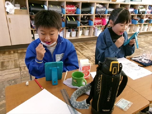 子どもたちは、乳歯から永久歯に生えかわる時期にあるため、乳歯と永久歯のちがいや、歯の大切さについてのお話を聞きました。