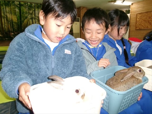 園内では、ふれあい動物教室に参加し、ウサギやモルモットを抱っこしました。児童たちは「ふわふわだ!」「かわいい!」と笑顔いっぱいで、動物とふれあう楽しさを感じていました。