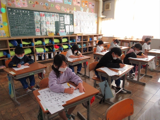 1、2年生は硬筆、3~6年生は毛筆で行いました。どの児童も、集中して取り組んでいました。