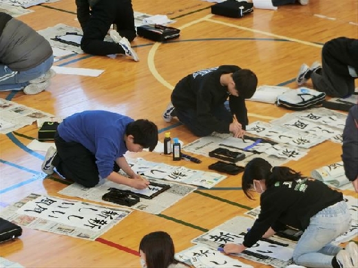 一文字一文字に思いを込め、冬休み中の練習の成果を発揮しながら、丁寧に書き上げる姿が印象的でした。