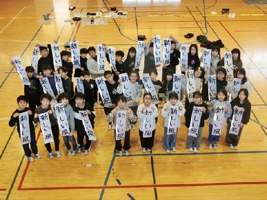 1月9日(金)、3年生から6年生の児童が体育館に集まり、書き初め会を開催しました。