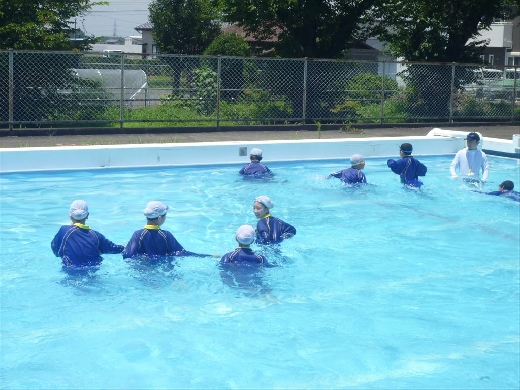 2年生、4年生、6年1組が、それぞれ着衣泳を実施ました。水にぬれた衣服の重さや動きにくさを体験しました。また、ペットボトルやビニル袋を使って、水に浮く練習をしました。