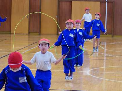 次は4年生の番です。 4年生は、連続跳び…4分 二重跳び…10回で合格です。