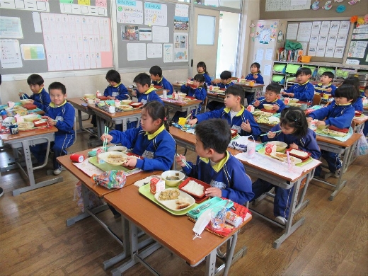 1年生 給食の様子(坂東市合併20周年記念献立)