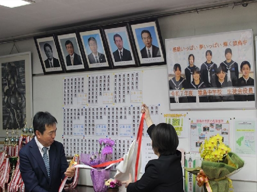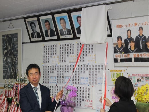 4月9日放課後、螧原前校長先生の掲額式が校長室にて行われました。