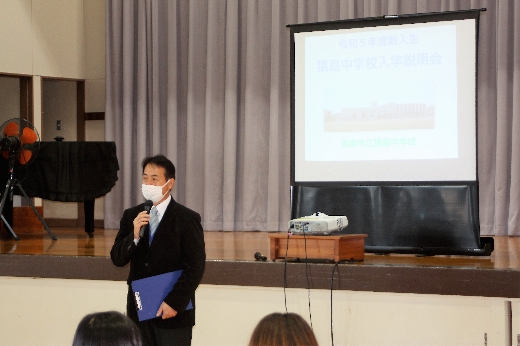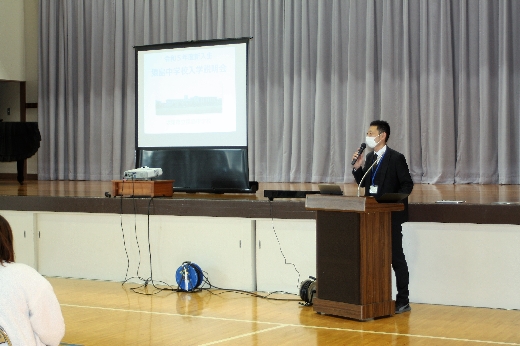 令和5年度に猿島中学校に入学する児童とその保護者の皆様への「新入生説明会」が、12月8日(木)午後、生子菅小学校の体育館で開催されました。感染症の拡大防止のため、今年度も中学校の体育館に一堂に会しての開催ではなく、小学校区ごとに各小学校を会場としてお借りしての分散開催です。学校長のあいさつの後、会計等の説明や中学校生活の紹介などが行われました。4月の入学を心待ちにしております。
