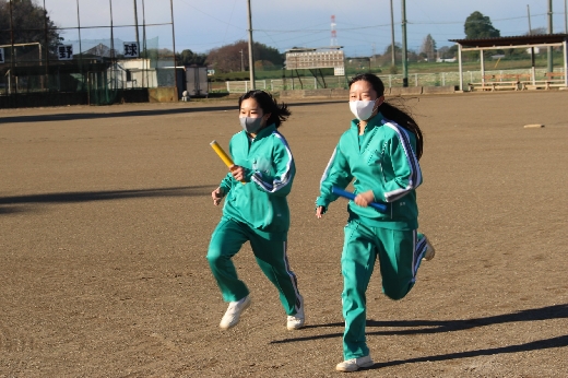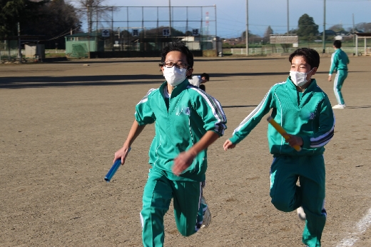 12月19日(月)5校時、第2学年の学年レクリエーションが校庭で行われました。学級委員で話し合い、学級対抗リレーと部活動混合対抗リレーを行いました。寒い日でしたが、生徒たちは楽しみながら一生懸命走っていました。お互いのチームを応援し合う姿も見られ、よい雰囲気で行うことができました。