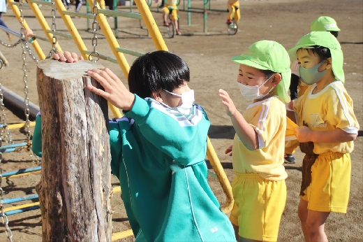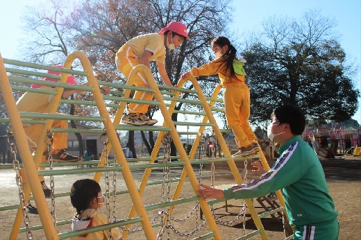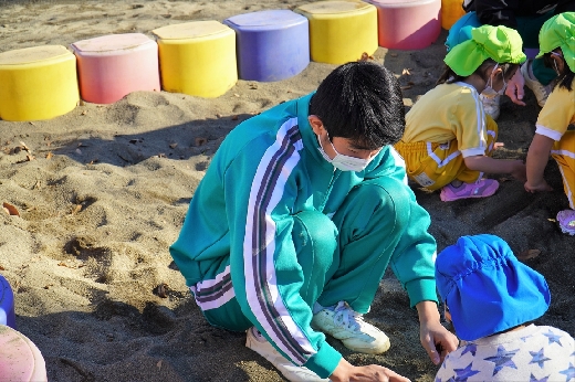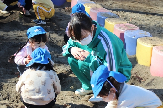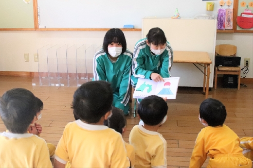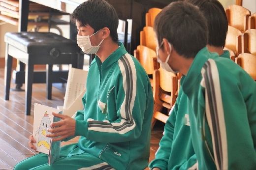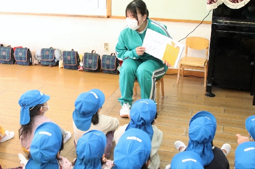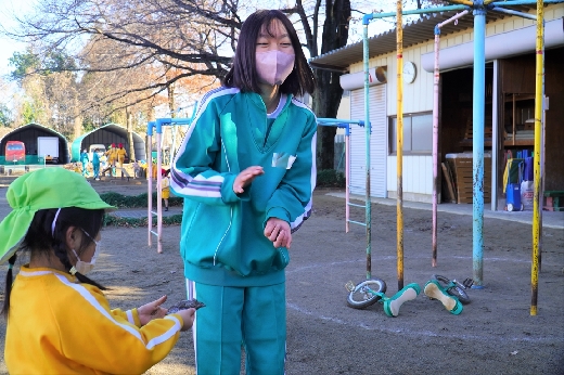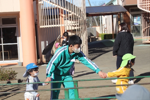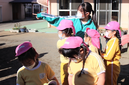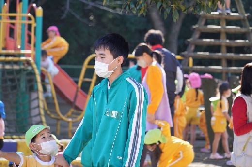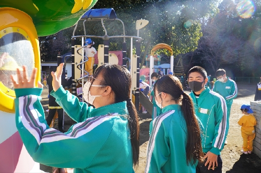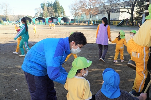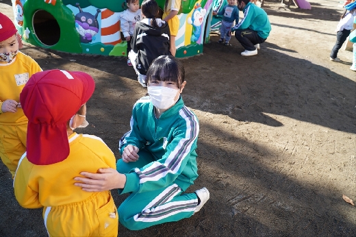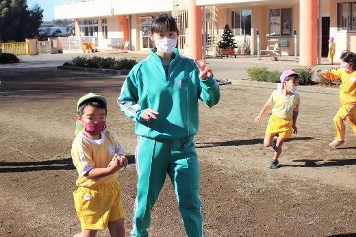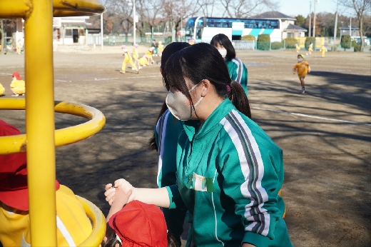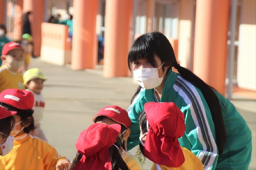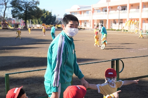 12月20日(火)午前、技術・家庭科(家庭領域)の学習の一環として、3年1組と3年2組が「若草明徳保育園」で保育実習を行いました。幼児とふれ合う実践的・体験的な学習活動を通して、幼児の心身の発達と生活、それを支える家族の役割や遊びの意義について理解し、幼児との関わり方を工夫できるようにすることが主なねらいです。朝、バス2台に分乗して中学校を出発、約2時間の実習で生徒たちは幼児たちとたくさんふれ合い、幼児についての理解を深めていました。