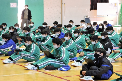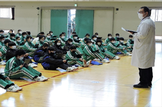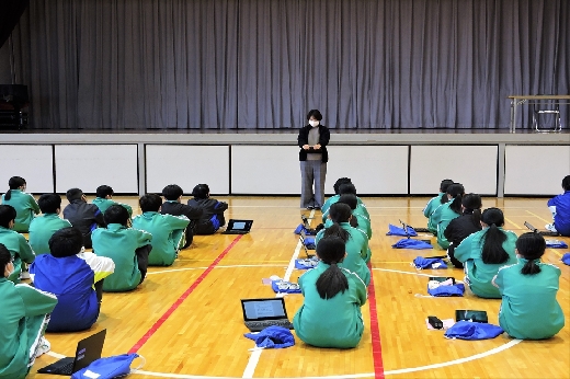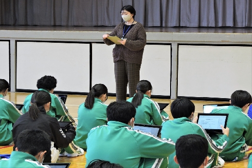 12月20日(火)6校時、体育館で2年生の学年集会が開かれました。はじめに2学期の学習面や生活面の振り返りをもとに、これからの学習のしかたや3学期の予定について確認しました。そして、冬休みの過ごし方について、特にSNSの使い方や交通安全についての留意点を全員で確認しました。生徒たちは、真剣な態度で集会に臨んでいました。
