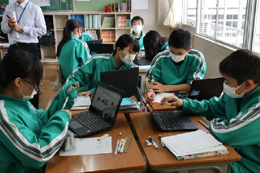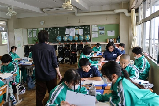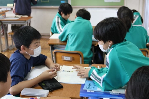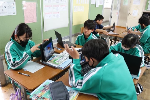 1人1台端末を活用して国旗の由来を調べたり、物語文で登場人物の心の動きを整理したりするなど、集中して授業に取り組んでいました。