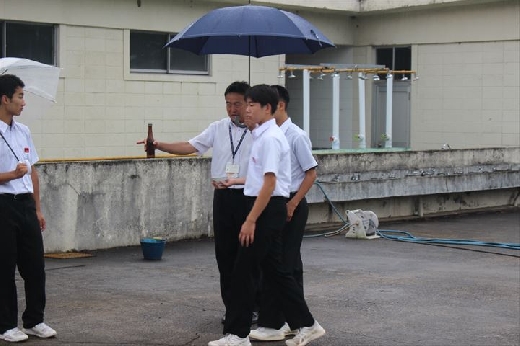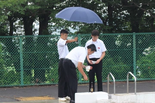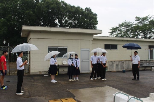 プール開きは、3年生の体育委員を中心に進行を行い、安全な水泳学習となるようお清めを行いました。