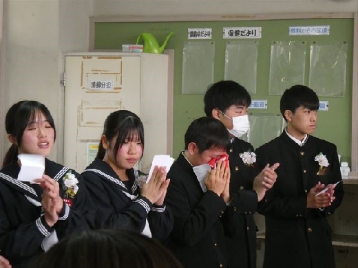 前日には、在校生が心を込めて式場の作成や清掃を行い、素晴らしい式場の中で式を行うことができました。