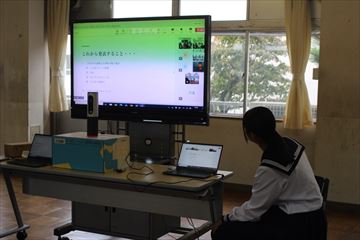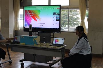 猿島中学区の4つの小学校と猿島中生徒会がオンラインでつながり、各学校でのいじめの防止や友達との絆づくりに向けた日頃の取り組みを発表しました。