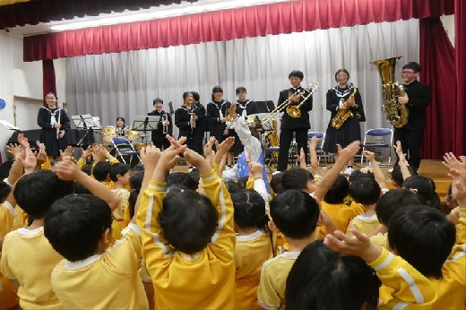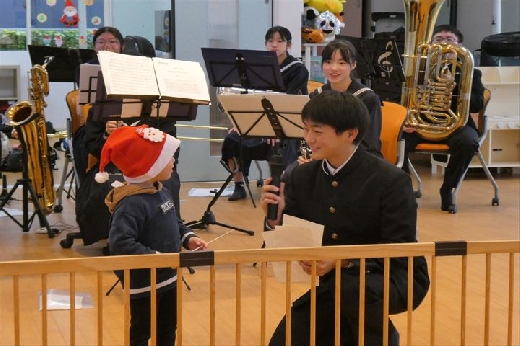12月25日(木)と26日(金)、認定こども園七星と若草明徳保育園幼稚園に、本校の吹奏楽部が訪問演奏を行いました。