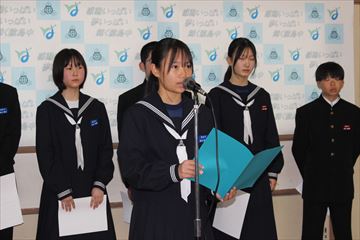 各学年の代表3名による作文発表では、3学期に向けての抱負が述べられました。学習への取り組みや部活動、進路に向けての前向きな決意が伝わってくる発表となりました。