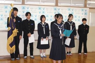 1月7日(水)3学期始業式と新生徒会役員の任命式が行われました。