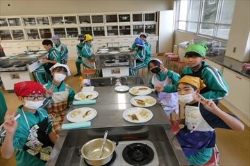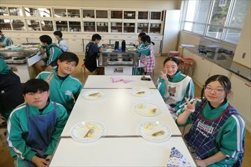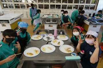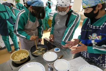 各クラスの家庭科の時間に調理実習が行われました。今回はタラのムニエルと粉ふきいもを作りました。