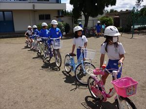 6月4日(火)の2校時、3・4年生の児童を対象に交通安全教室を実施しました。坂東市交通防災課の担当者の皆様にご協力いただき、子どもたちは校庭で正しい自転車の乗り方を学習しました。自転車の点検方法、交通標識の意味、横断歩道の渡り方など多くのことを学ぶことができて大変有意義な時間となりました。交通防災課の皆様、ありがとうございました。