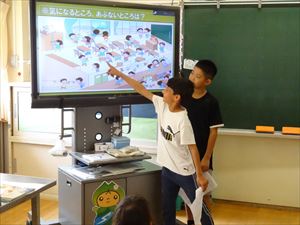 9月17日(火)の3校時、今年度2回目となるピアサポート学習会を実施しました。今回のテーマは「教室での過ごし方」についてです。このテーマは上級生となる5・6年生が話し合いで決めたもので、本日の話し合いも5・6年生がしっかりと司会、進行を務めました。自分たちで、45分の話し合いをまとめることができた5・6年生。とても頼もしかったです。1年生から4年生も、各学級の生活を振り返り、よりよい生活について考えることができました。