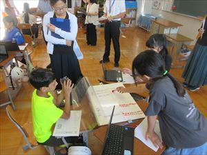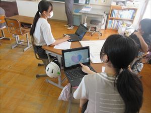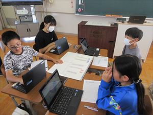 5・6年生の道徳の授業では、自由ということについて考えていました。自由とは、他の人に迷惑をかけず、社会的なルールやマナーの中で自分の意思を尊重しながら行動することです。5・6年生のみんなは、タブレットやホワイトボードに自分の考えや思いを書き込み、グループで話し合いながら、自由ということについて考えていました。学年や男女関係なく話し合えるのが、5・6年生の良いところですね。