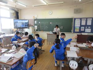 今日の授業では、家庭や学校では地震などに備えてどのような取り組みをしているか、一人一人が考えていました。