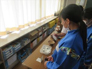 子どもたちは、自分で選んだものを後日洗濯をするようですね。洗濯表示をじっくり見ている子もいて、はじめて知ったこともあったのではないでしょうか。同じグループ同士で、和やかに話し合いながら活動していました。振り返りの発表もとても良かったです。