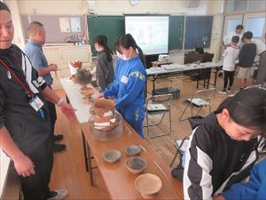 また、3時間目は、5・6年生の埋蔵文化財出前講座があり、市生涯学習課の高野先生から坂東市の歴史について学びました。坂東市から出土した石器や土器に初めて触ることができ、ドキドキしたことでしょう。高野先生、子どもたちに貴重な体験をさせていただき誠にありがとうございました。