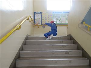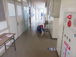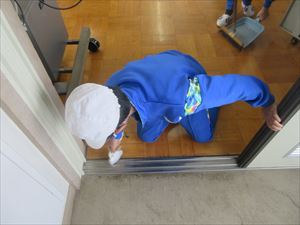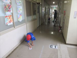廊下や階段を水拭きする子、使っていないロッカーや引き戸のレールにたまったゴミ取りをする子など、自分たちで決めたそうじ場所にそれぞれ分かれて、学校をきれいにしていました。