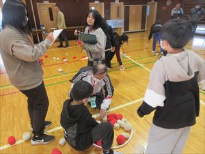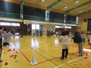 後半は「あいさつビンゴ」「チーム対抗玉入れ」で盛り上がりました。