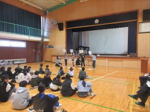 1~4年生は、歌や楽器演奏、授業で学んだことの紹介など、工夫を凝らして保護者地域の方々に発表してくれました。5・6年生は、修学旅行の発表。めぐった寺社や食べ歩きした小町通り、江ノ電やロープウェイ、遊覧船にのったことなど、詳しく紹介してくれました。
