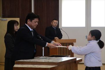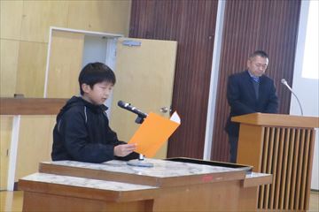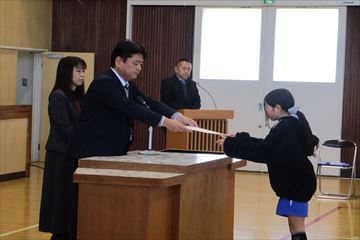 本日は2学期最終日。3時間目に表彰式・終業式を行いました。表彰式では文化祭で掲示された絵画や習字、校内の読書賞や月例テスト結果など、子どもたちが2学期たくさんの分野で努力してきたことを改めて感じることができました。終業式の作文では、遠足や修学旅行等、楽しい思い出を通しての学びや、3学期の豊富を、しっかりと発表できていました。校長先生のお話では、たくさんの写真を用意してくださり、みんなで2学期の思い出を振り返りました。始業式は、1月7日。校長先生からの宿題、冬休み中に決めた「3学期に頑張りたい事」を胸に、元気な姿で登校してくれるのを、楽しみに待っています。