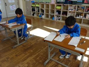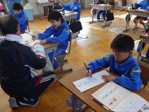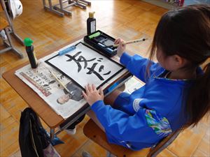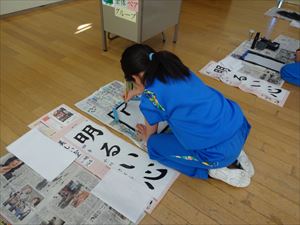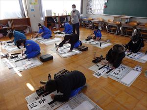 1月13日(火)の2校時、全学年の教室で新年書き初め会を行いました。新年の開始に際して、今年一年もがんばりたいという真剣な気持ちを書写で表現しました。どの学年も引き締まった雰囲気で、ていねいな字を書いていました。