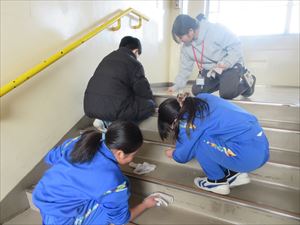 床や階段の汚れを落とすだけでなく、子どもたちの心まできれいになったかのように見えました。