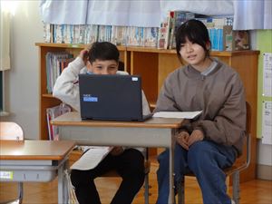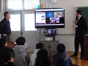 1月22日(木)の3校時、本校5・6年生の児童が台湾・蓬莱小学校の児童とオンライン交流をしました。お互いの国や学校を紹介した後に、班に分かれて英語でフリートークをしました。今まで練習した成果を発揮して、台湾の子たちに質問をしたり、答えたりしました。慣れてきた後半部分では、お互いに非常に盛り上がりました。台湾の子たちが日本語であいさつをしてくれたので、私たちも非常に嬉しかったです。大変有意義な時間を持つことができました。