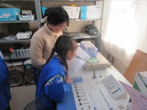 また、今回の見学では活動の体験も行いました。本の貸し出しや放送機器などの操作では、少し緊張した様子でしたが、みんながしっかり体験することができました。