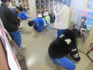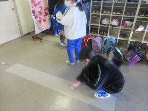 健康委員会は時間の都合で見学の様子が取れませんでしたので、3年生の見学後に行っていた昇降口掃除の様子を掲載しました。