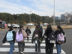 お昼は、議事堂そばの憲政記念公園で食べました。朝早くからのお弁当づくり、ありがとうございました。お家の人が作ってくれたお弁当は、とてもおいしかったようで、子どもたちも大満足でした。