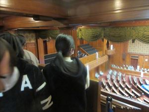 参議院の議場や廊下、御休所、中央広場などを見学した子どもたちは、とても緊張した面持ちでした。