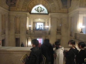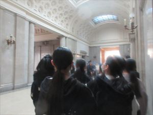 国会議事堂までの高速道路上でやや渋滞することもありましたが、ほぼ予定通り到着できたため、議事堂内では先頭のグループで見学しました。