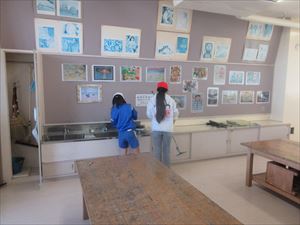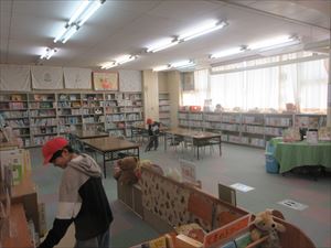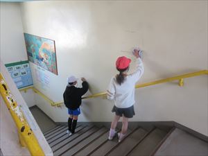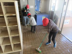 1~5年生は縦割り班で、学習室や図工室、図書室などを掃除しました。