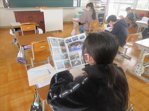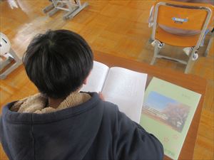 6年生の様子を見に行くと、卒業アルバムや卒業文集を眺めている子、担任の先生から渡された通知表をじっくり読み返している子もいました。