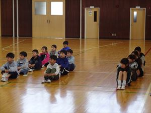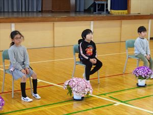 2~6年の上級生が1年生に対して歓迎のあいさつを述べ、プレゼントを贈りました。1年生もしっかりとお礼を言うことができました。