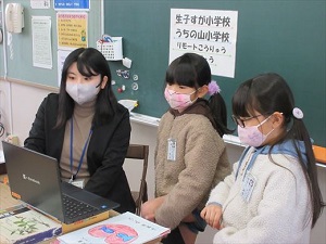 1月24日(火)の2時間目に、本校2年生児童が生子菅小学校の2年生とオンラインによる「国語」の授業を行いました。