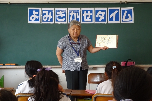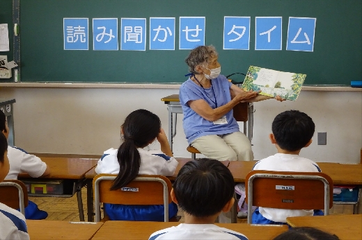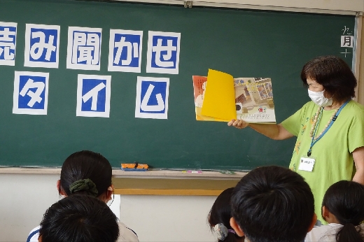 朝、ボランティアの皆さんに来ていただいて、読み聞かせタイムとなりました。楽しい朝の時間を過ごすことができました。ボランティアの皆さん、2学期もよろしくお願いいたします。