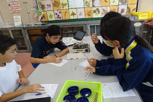6年生の理科は「水溶液の性質」について学習しています。今日は5種類の水溶液をにおいや見た目、熱することで見分けることができるかを実験しました。