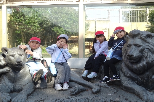 1・2年が東武動物公園に遠足に行きました。いろいろな動物たちを見て、楽しい時間を過ごしました。ホワイトタイガーのバックヤードでは、ホワイトタイガーについて飼育員さんの話を聞き、実際にえさを食べる様子を見ました。たくさん歩いて、帰りのバスはとても静かでした。