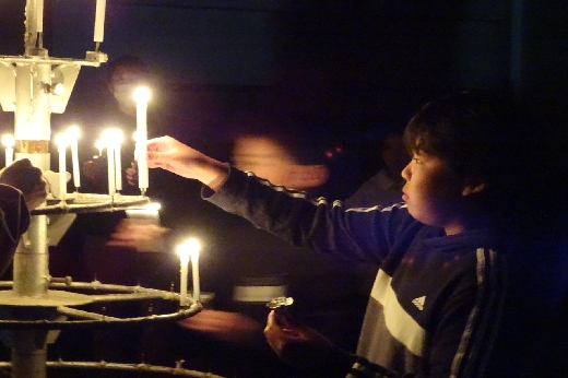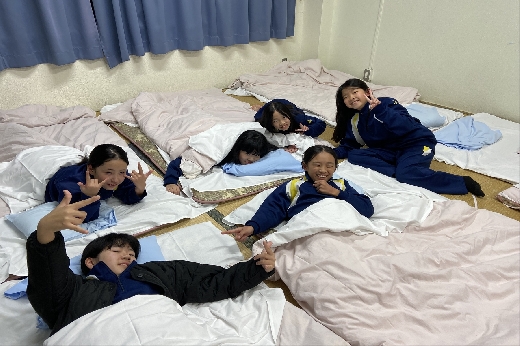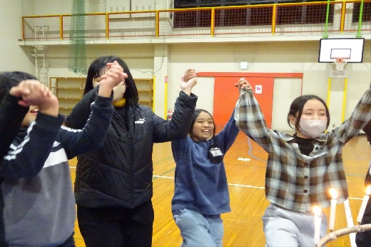 1日目の夜はキャンドルサービスです。静かな雰囲気の中、キャンドルに火を灯し、みんなでジェスチャーゲームや〇×ゲームをし、マイムマイムを踊りました。先生方もたくさん応援に来てくれました。