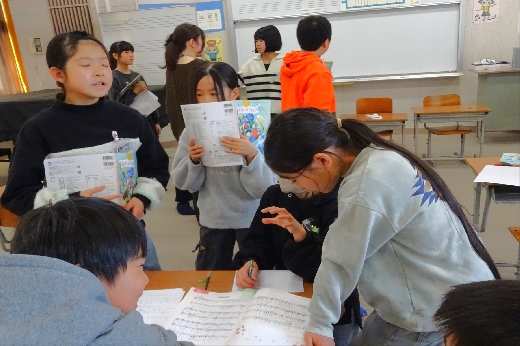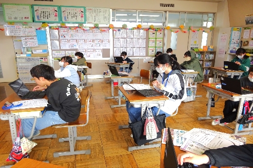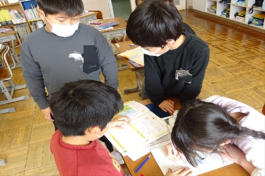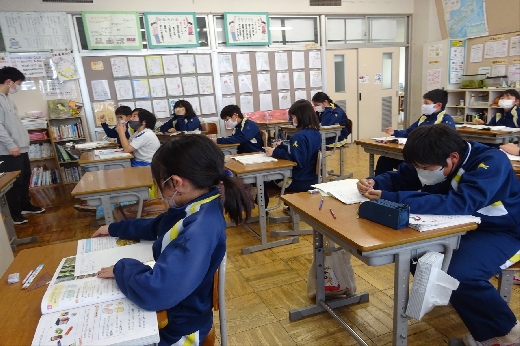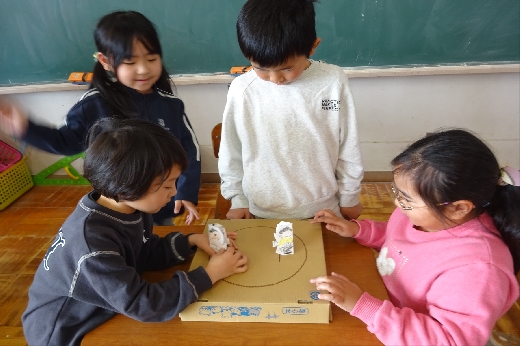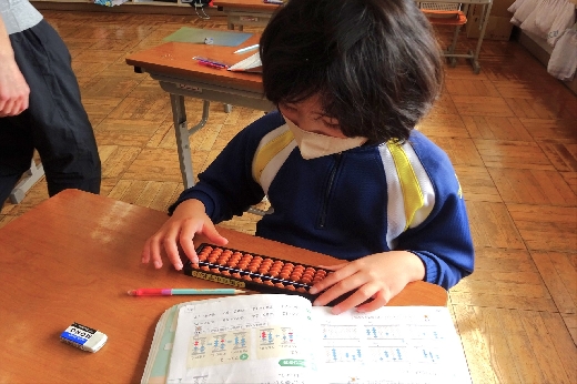 2時間目の様子です。3年生はそろばんの学習をしていました。珠を慎重に動かして、大きな数をそろばんで表す練習をしていました。1年生は生活科で「トントンずもう」を作っていました。