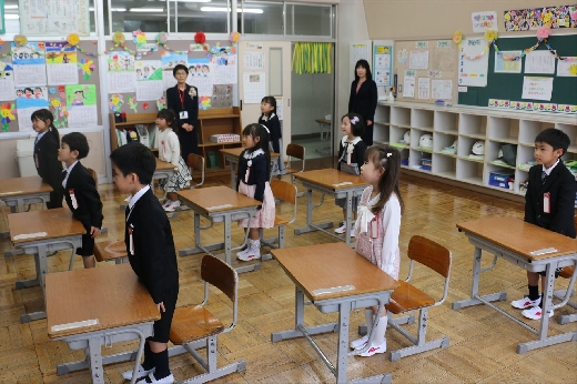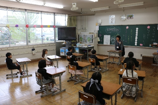 入学式終了後、新入生は保護者の方々と一緒に1年生の教室に入り、弓馬田小学校での新たな生活について心を躍らせていました。