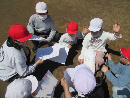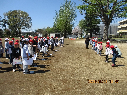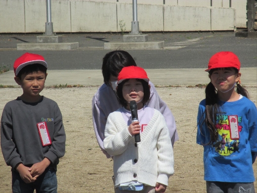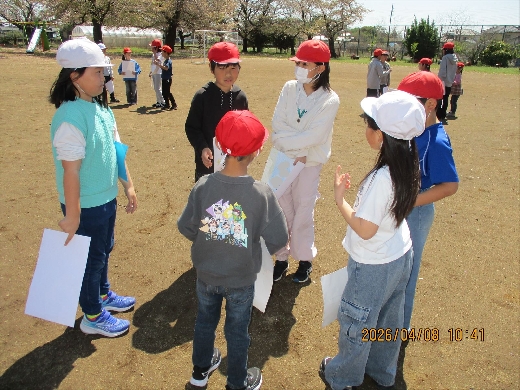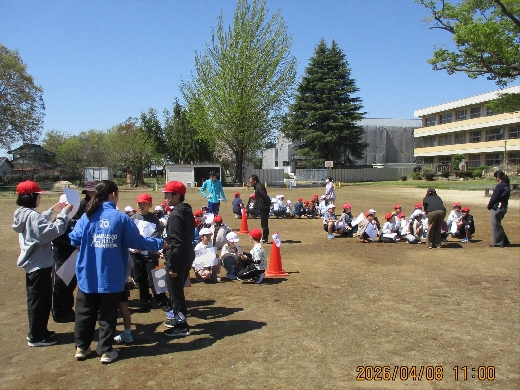 4月8日(水)、全校児童が校庭に集まり、中央委員会が中心となって「対面式」を実施しました。まず、1年生が元気よく自己紹介した後、6年生代表が歓迎の言葉を温かく述べました。その後、1~6年生が縦割り班ごとに集まり、仲間づくりの活動「となりのとなり」を行って、コミュニケーションを深めました。
